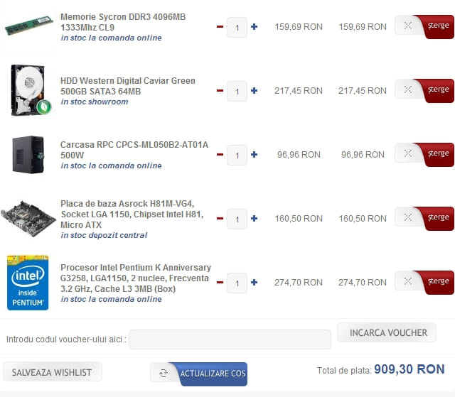 Salut Alex, sistemul acesta (de la Azerty) este cel mai ok pentru bugetul tău. E un pic mai scump dar merită cei 100 RON în plus, sistemul având potențial și pentru overclocking.